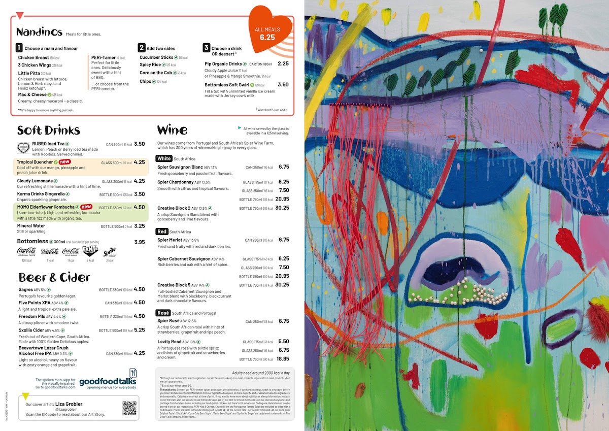 Nando's The Brunswick Menu, located at Unit 23, The Brunswick Shopping Centre, Brunswick Square, London WC1N 1AE, UK, is an excellent spot for anyone craving flavorful, flame-grilled chicken with a unique twist. As a well-known global brand, Nando’s stays true to its roots by offering a menu bursting with spicy, succulent peri-peri chicken dishes, complemented by a variety of sides and sauces that cater to diverse tastes.